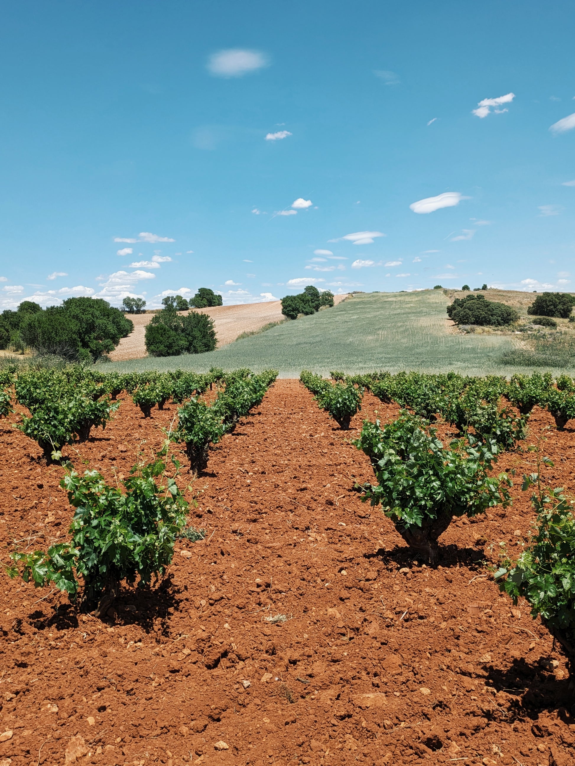A escasos metros del límite entre la Alcarria y Madrid, junto a la antigua Cañada Real Soriana Oriental, nacen las cepas de nuestro gran vino blanco de guarda. Un viñedo viejo, plantado sobre arcilla y caliza, que desde hace siglos comparte paisaje con los caminos de la Mesta y el paso lento de los rebaños.